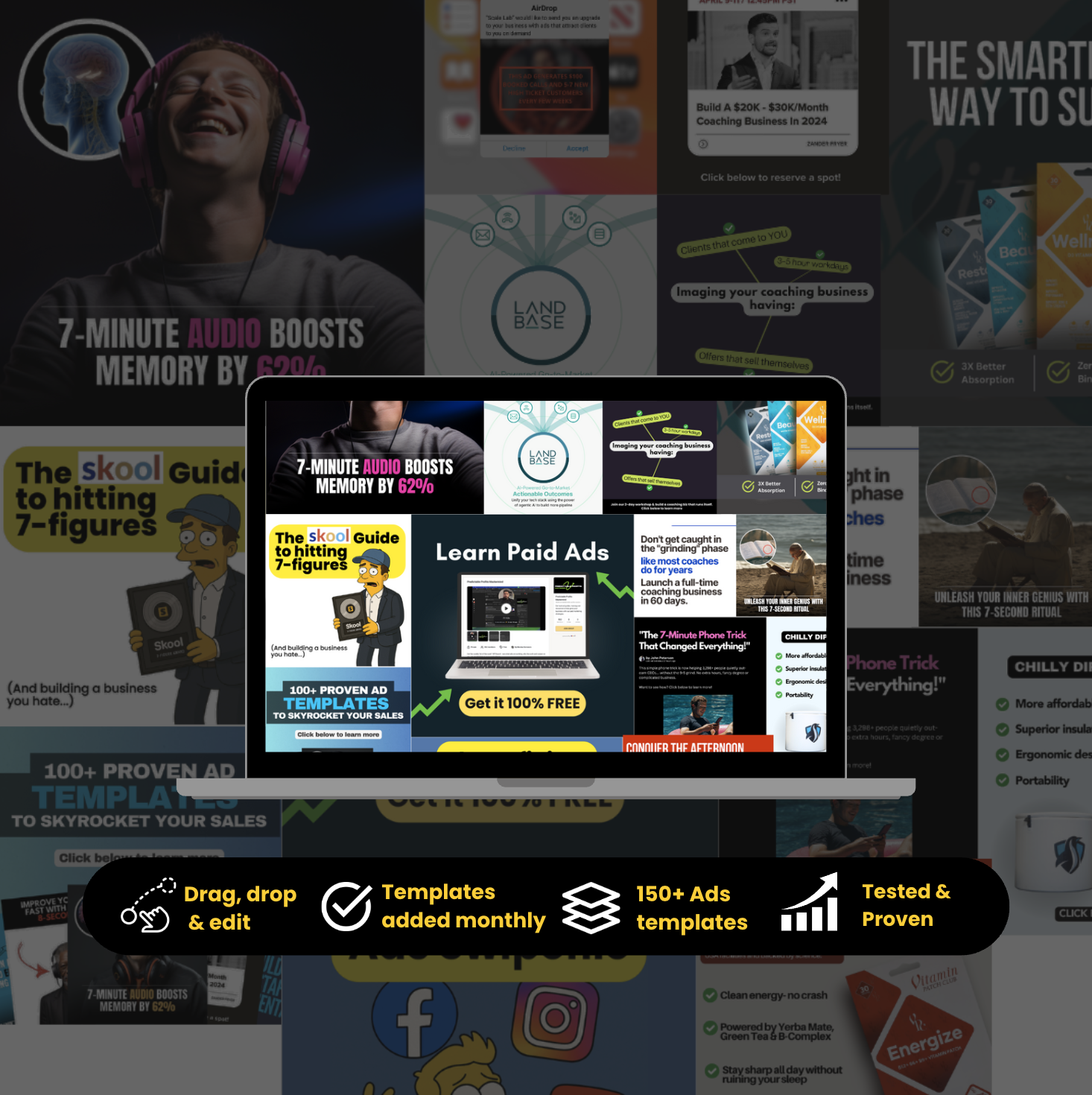 The "Ad Vault" where new winning templates are added monthly