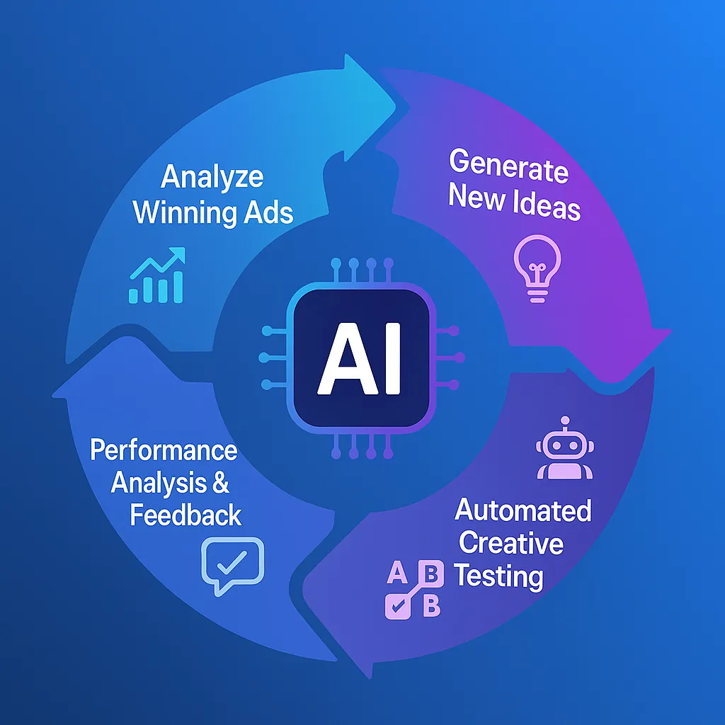 Having done for you creative templates is only half the battle if you can't make more on demand. Ad platforms are creative driven, and we've built a system using AI that allows you to make more winners, on demand.